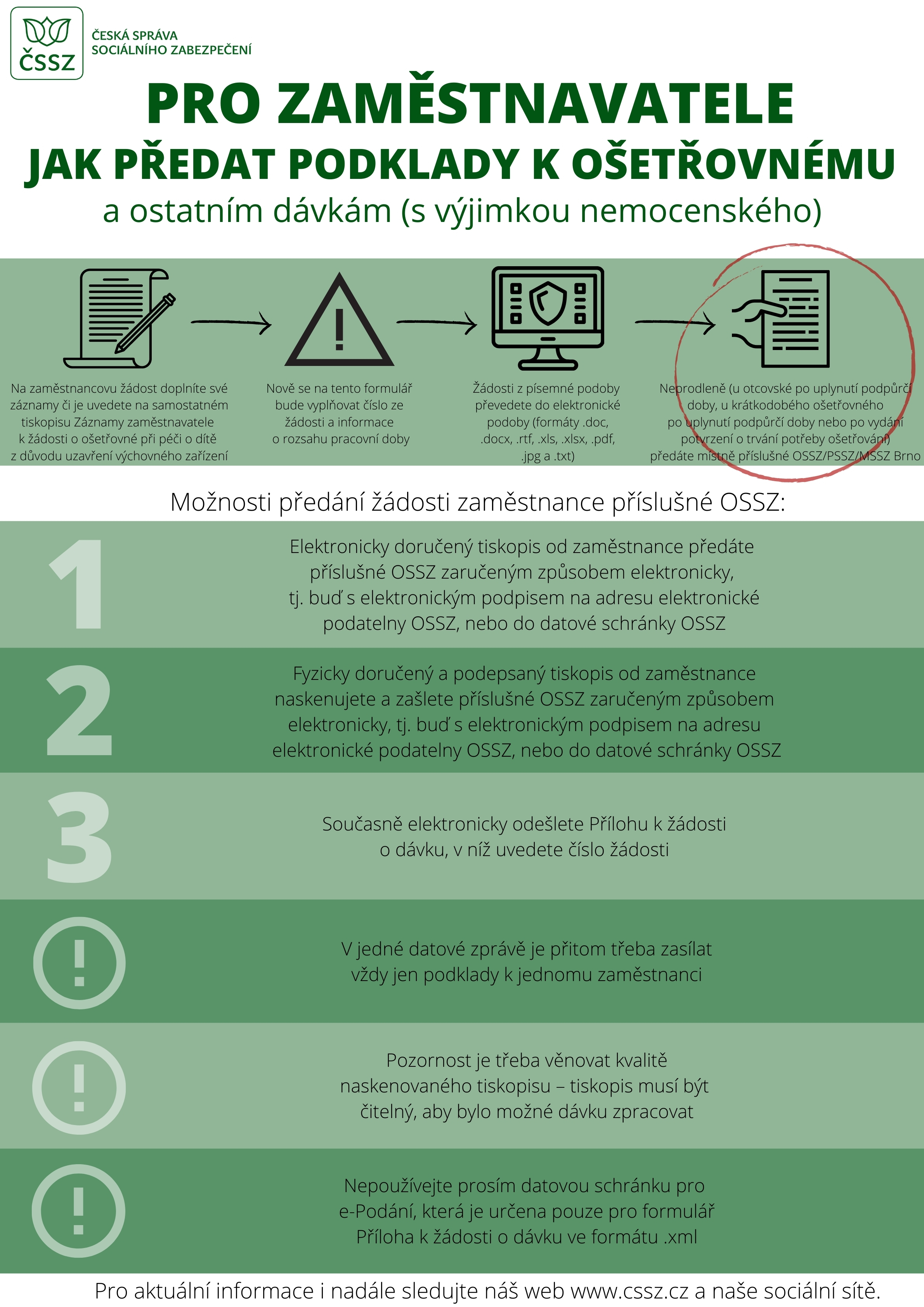 Pokud je žadatel zaměstnaný, vyplněný formulář o otcovské dovolené předá zaměstnavateli, pokud žadatel o dávku pracuje jako osvč předá vyplněný formulář na ossz.